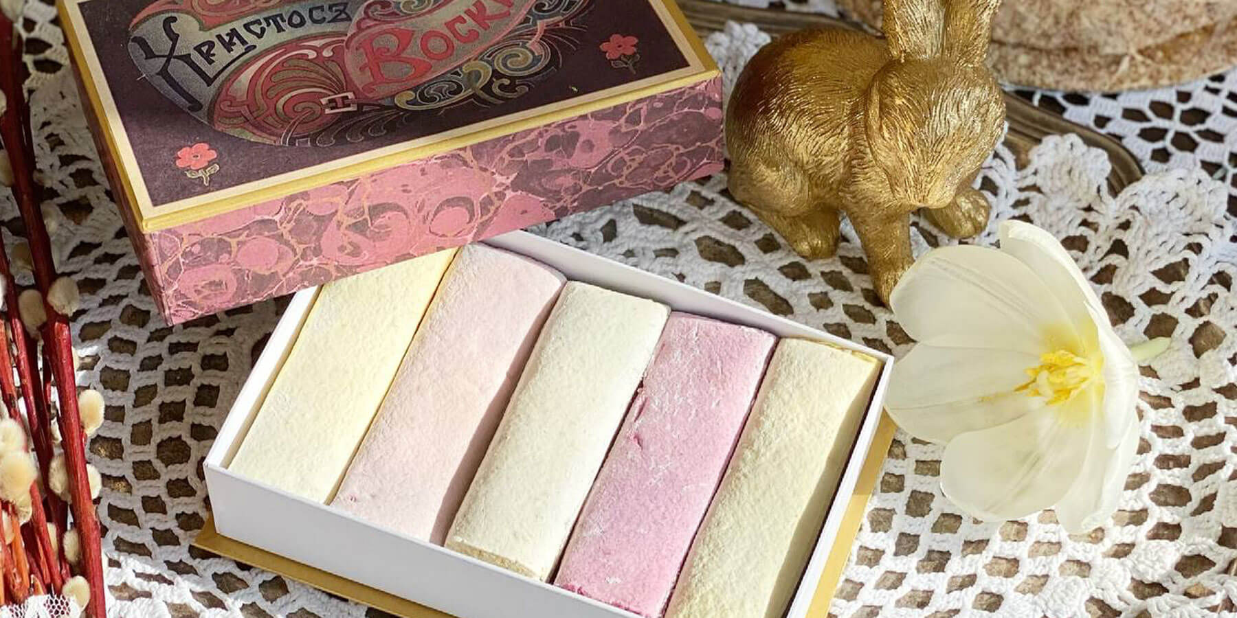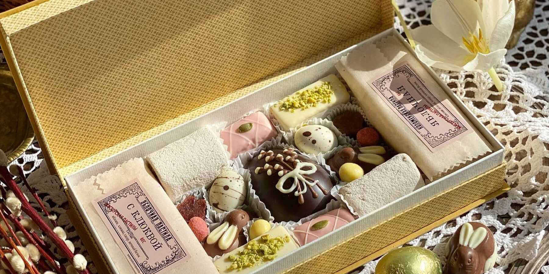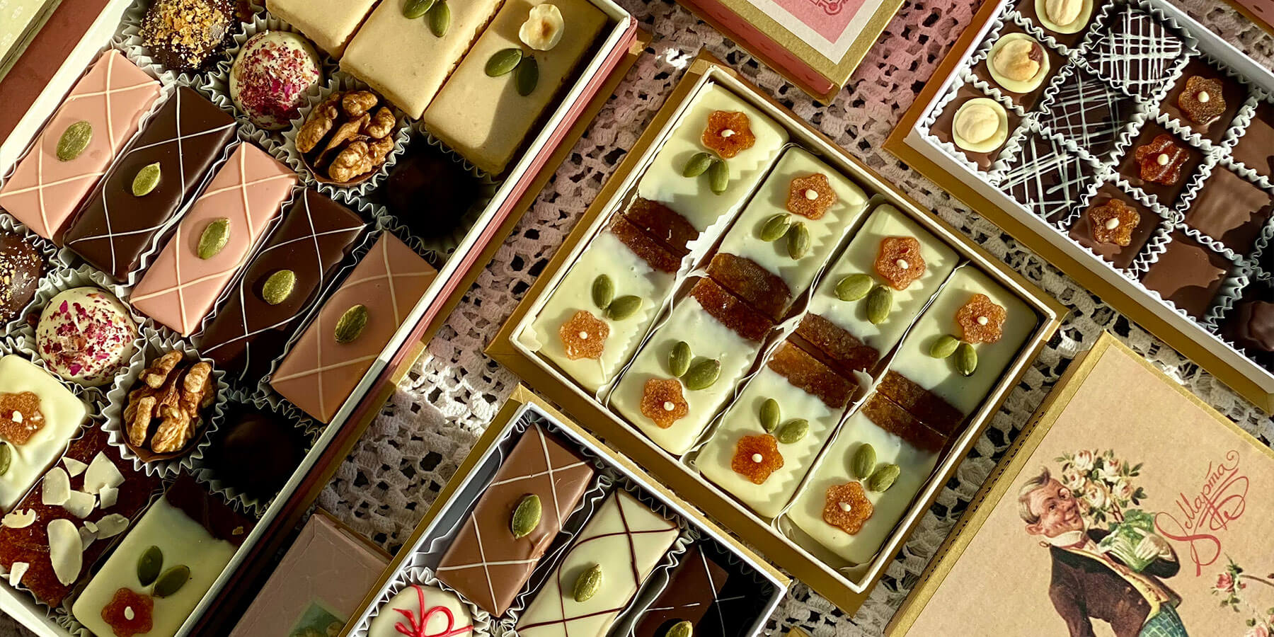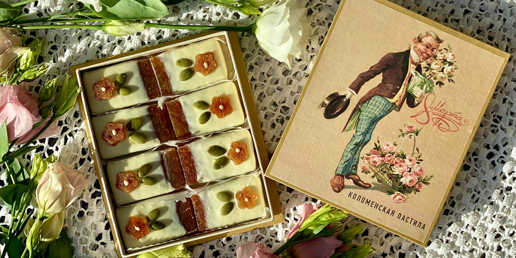 Собираем традиционные сладости по всей России: приготовленные вручную, по восстановленным рецептам, в винтажной упаковке. Сладости готовят в музейных мастерских и кондитерских, а мы привозим их для вас, чтобы вы могли познакомиться со сладкой историей страны.
